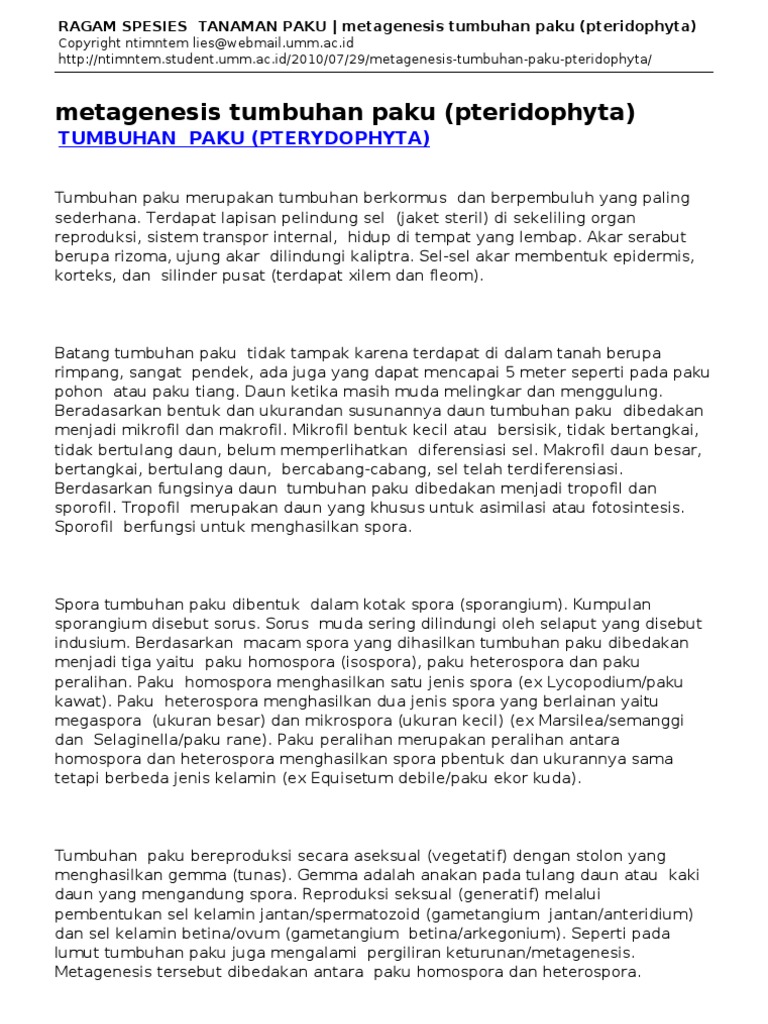 Tumbuhan Paku Ciri Ciri Struktur Klasifikasi Metagenesis Daur Hidup Manfaat
